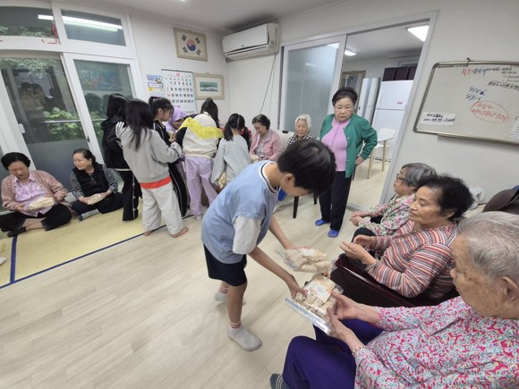 지난 9월 19일, 돈암2동 소재 우리동네키움센터 6호점 아동과 교직원 등 총 10여 명이 함께 지역 내 경로당을 방문해 직접 만든 약밥과 한과를 선물꾸러미로 전달했다.
