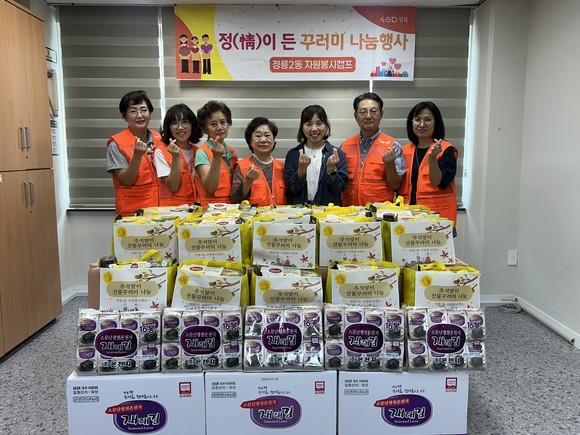 이어 9월 23일에는 정릉2동 자원봉사캠프가 취약계층 30가구에 ‘추석맞이 식료품 꾸러미’를 전달했다. 햇반, 사골곰탕, 재래김, 율무차 등 8종으로 구성된 꾸러미는 자원봉사자들이 직접 포장해 가정마다 전달하며 안부를 살폈다.