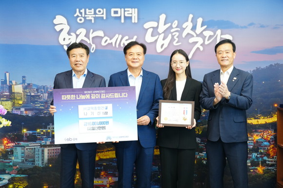 이승로 성북구청장은 “성북복지재단에 소중한 기부금 전달이 이루어져 매우 뜻깊다”며 “나눔에 동참해주신 나기선 회장님께 감사드리고, 이번 기부가 성북구민 모두가 체감할 수 있는 따뜻한 복지 실현으로 이어질 수 있도록 구청도 힘을 보태겠다”고 밝혔다.