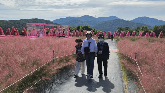어르신들은 허브아일랜드에 도착해 트랙터를 타고 핑크뮬리가 물든 허브팜을 둘러보며 가을 풍경을 즐겼다. 이어 허브 베개 만들기와 허브 오일 족욕 체험을 통해 심신의 피로를 풀고 여유로운 시간을 보냈다.