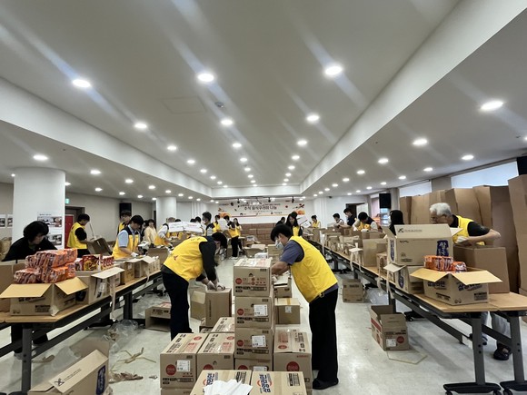 티알엔 식품꾸러미 포장 모습. 사진=중구청