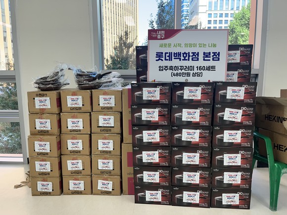 노벨리스코리아가 소형냉장고 45대를, 롯데백화점 본점에서 냄비·후라이팬 등으로 구성된 집들이세트 160개를 전달하며 새로운 보금자리에서 맞는 첫 명절을 응원했다.