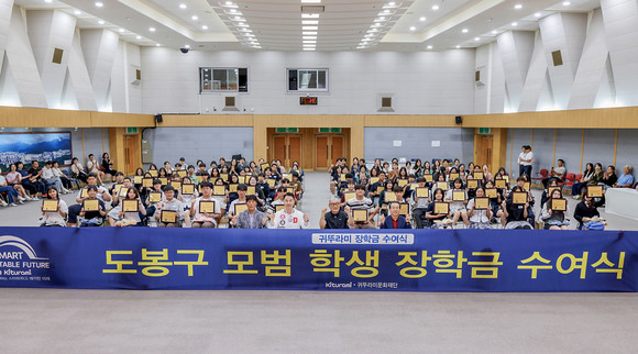 수여식에는 오언석 도봉구청장, 귀뚜라미 그룹 최진민 회장, 학부모 등 150여 명이 참석해 함께 장학생을 축하했다.