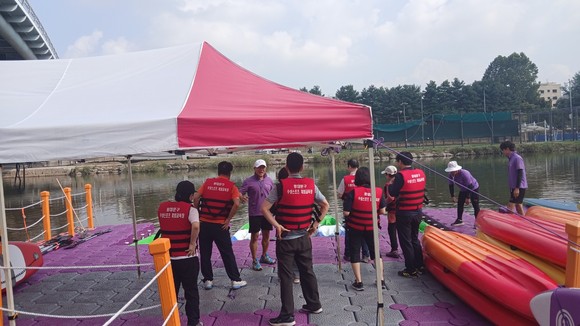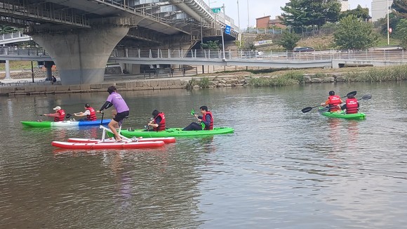 서울 동대문구(구청장 이필형)는 30일 이문수변공원 내 수상스포츠체험교육장에서 시각장애인 대상 카약 체험을 진행했다고 밝혔다.