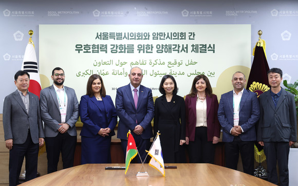 서울특별시의회는 요르단 암만시와 교류협력 양해각서(MOU)를 체결했다. 중동 도시와의 첫 MOU 체결로, 앞으로 중동 지역과의 교류 다변화가 기대된다.