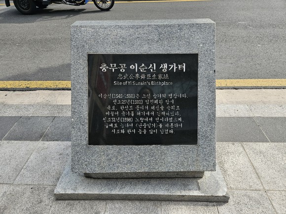 1985년 충무로 명보아트홀 앞에 세워진 ‘충무공 이순신 생가터’ 표지석과 2017년 생가 위치와 가까운 신도빌딩 앞에 설치된 ‘충무공 이순신 생가터’ 안내판이 있지만, 눈에 띄지 않아 모르는 사람이 많다.