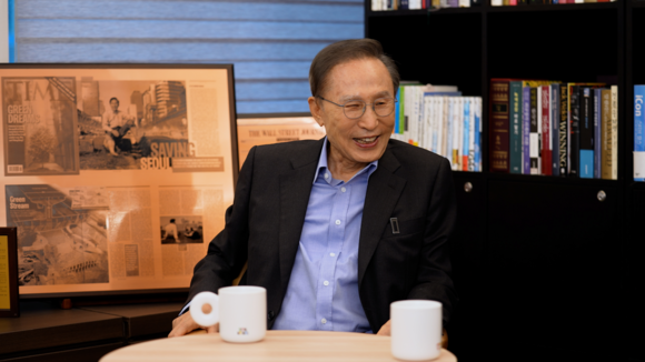 대담은 조수빈 아나운서의 사회로 진행됐다. 이 前대통령은 시장 재임당시 60~70년대 개발 프레임과 쓰레기, 악취 등으로 복개공사를 진행했던 청계천의 자연과 환경을 시민들에게 되돌려줘야겠다는 생각으로 복원 결단을 내렸다고 계기를 설명했다. 또 이 과정에서 발생한 정부와 시민들의 반대를 설득과 대안 제시로 해결한 일화도 소개했다.