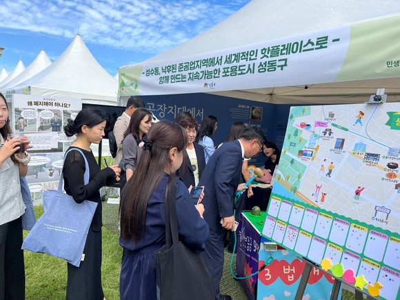 이 행사에서 성동구는 2개 분야의 부스를 구성했다. 먼저 민생경제 활성화 분야로 "성수동, 낙후된 준공업지역에서 세계적인 핫플레이스로! 함께 만드는 지속가능한 포용도시 성동구"라는 부스를 운영했다. 최근 핫플레이스인 성수동의 도시재생 사업과 젠트리피케이션 방지 정책을 소개하며 지역공동체 상생을 위한 젠트리피케이션 방지 3법 개정을 제안했다.