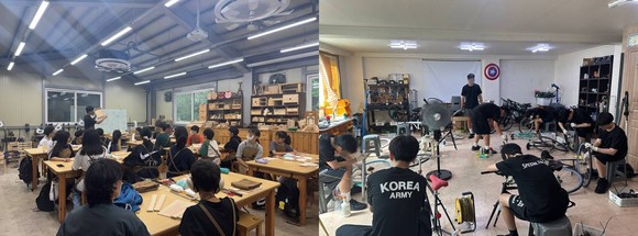 이곳에선 목공, 건축, 자전거 교실 등 세 가지 과정으로 구성돼, 청소년들이 다양한 분야의 실습을 할 수 있다.