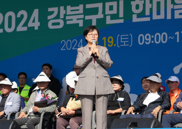 지난해 열린 ‘2024 강북구민 한마음 체육대회’에서 이순희 강북구청장이 인사말을 하고 있다. 사진=강북구청