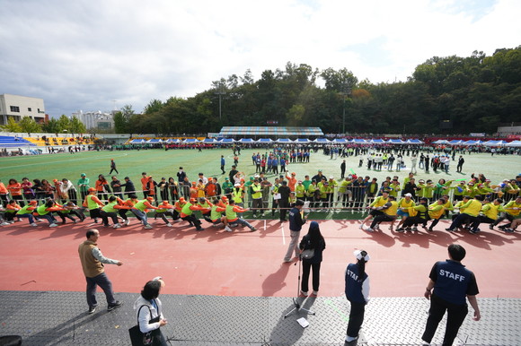 지난해 열린 ‘2024 강북구민 한마음 체육대회’에서 구민들이 줄다리기 경기를 하고 있다. 사진=강북구청