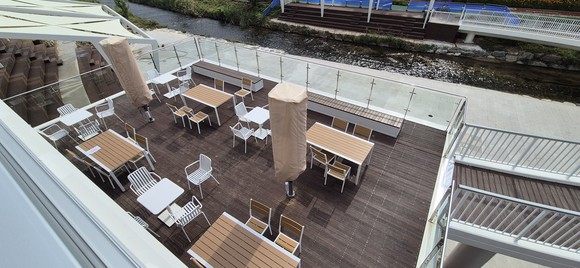 또 눈길을 끄는 것은 13석 규모의 라면존이다. 올해 초 중랑천과 당현천의 합류부에 개관한 수변감성쉼터 <두물마루>의 폭발적인 인기를 견인한 ‘한강라면’을 당현마루에서도 즐길 수 있게 했다. 해피박스와 라면존을 합쳐 실내외 90석의 테이블과 좌석을 마련했으며, 기존에도 설치되어 있는 바닥분수 주변에 그늘막과 계단형 스탠드 공간을 활용하면 실제 동시 수용인원 규모는 더 크다.