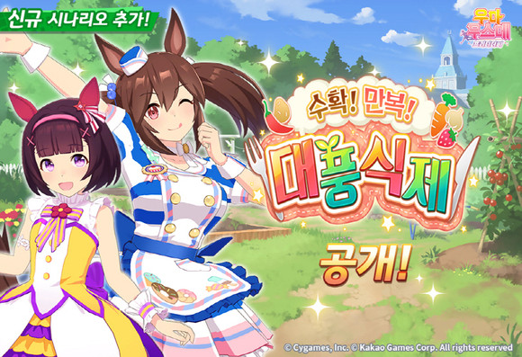 카카오게임즈(대표 한상우)는 사이게임즈(대표 와타나베 코이치)가 개발한 인기 게임 ‘우마무스메 프리티 더비’에 신규 육성 시나리오 ‘수확! 만복! 대풍식제’를 업데이트했다고 15일 밝혔다.