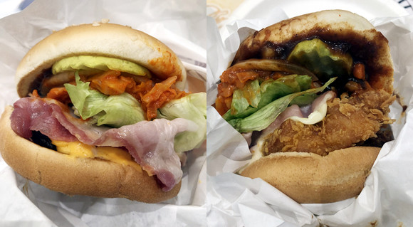 에드워드 리 K 비프버거(왼쪽), K 싸이버거. 코울슬로에 고추장, 고춧가루를 접목한 것이 특징이다. 사진=김금영 기자