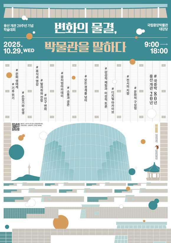 국립중앙박물관(관장 유홍준)은 용산 개관 20주년을 맞아, 학술대회 <변화의 물결, 박물관을 말하다>와 전문가 콜로키움 <기후 위기와 박물관의 미래>를 10월 29일(수)과 30일(목)에 국립중앙박물관회와 공동개최한다.