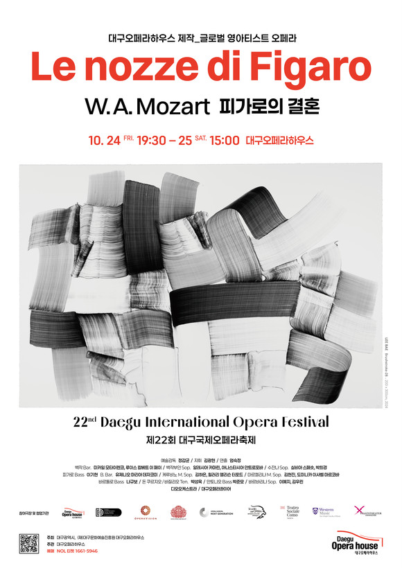 이번에 선보이는 <피가로의 결혼>은 제22회 대구국제오페라축제의 특화 콘텐츠로, 차세대 글로벌 오페라 인재 육성을 목표로 2025년 문화체육관광부 장르별 시장 거점화 지원사업과 연계하여 진행된다. 지난 6월, 대구오페라하우스는 국제 네트워크를 바탕으로, 전 세계 극장 및 기관으로부터 추천받아 17개국 44명의 지원자를 대상으로 영상 심사를 통해 최종 출연자를 선발하였다. 이번 무대에 오르는 출연자들은 오는 10월 26일 공연 실연을 바탕으로 또다시 ‘글로벌 캐스팅 오디션’의 기회를 얻게 된다. 이탈리아 아실리코 코모 시립극장, 페라라 시립극장, 질리오 자코모 푸치니 극장, 에스토니아 사아레마 오페라 페스티벌, 뉴오페라 싱가포르, WFIMC(세계국제음악콩쿠르연맹), 캐나다 런던웨스턴음악대학교 등 8곳의 주요 세계 오페라 기관 관계자들이 직접 심사 및 캐스팅에 참여할 예정이다. 따라서 이번 프로그램은 신진 성악가들이 세계 무대로 뻗어 나갈 수 있도록 기회를 마련하고, 실질적인 도약의 발판이 될 것이다.