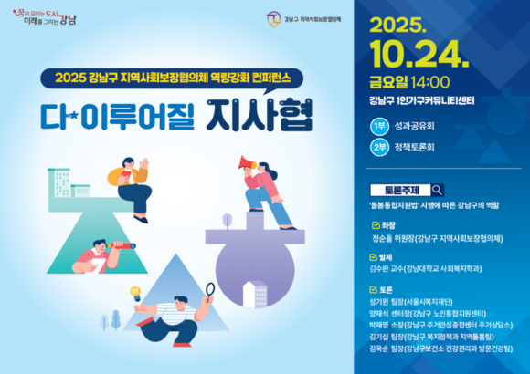 서울 강남구(구청장 조성명)가 오는 10월 24일 오후 2시부터 5시 30분까지 강남구 1인가구커뮤니티센터에서 지역사회보장협의체 위원 및 담당 공무원 등 100여 명이 참석하는 ‘강남구 지역사회보장협의체 역량강화 컨퍼런스’를 개최한다.