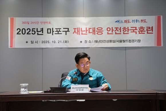 서울 마포구(구청장 박강수)는 10월 21일 오후 2시, 재난안전상황실과 서울월드컵경기장 서문 일대에서 ‘2025년 재난대응 안전한국훈련’을 실시했다.