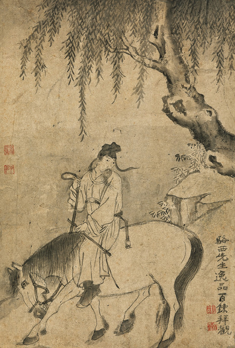 버드나무 아래 말 타는 인물을 그린 그림은 ‘낙서선생일품백련배관(駱西先生逸品百鍊拜觀)’이라는 근대동양화가 의재 허백련의 배관이 있어, 조선후기 ‘자화상’으로 유명한 공재 윤두서의 아들 연옹 윤덕희의 필력일 가능성을 짐작해볼 수 있다. 이처럼 고서화에는 후대 서화가나 감식가들이 남긴 작품에 대한 평이나 작가에 대한 정보가 종종 전하는데 이를 배관이라 부른다. 사전적 정의로 편지나 작품, 소중한 물건 등을 공경하는 뜻을 가지고 본다는 의미다.