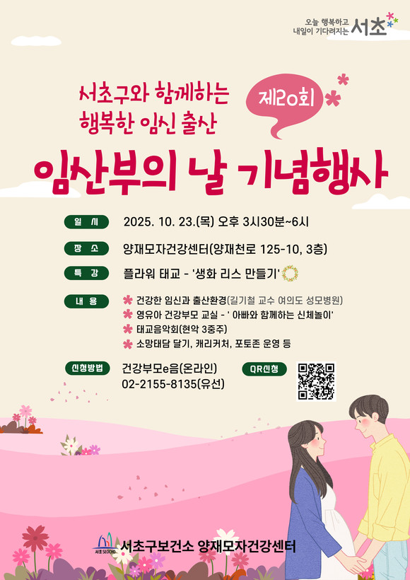 서울 서초구(구청장 전성수)는 23일(목), 양재모자건강센터에서 개소 2주년을 맞아 ‘제20회 임산부의 날 기념행사’를 개최한다고 밝혔다.