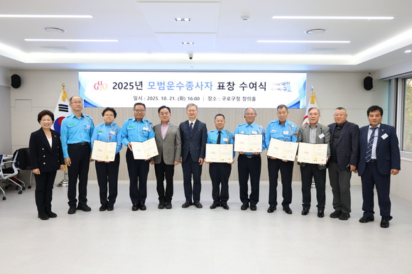 서울 구로구(구청장 장인홍)는 21일 구청 창의홀에서 2025년 모범운수종사자 표창을 수여했다.
