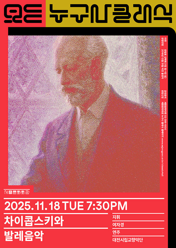 무대는 여자경 대전시립교향악단 예술감독 겸 상임지휘자의 세련된 지휘 아래, 대전시립교향악단의 연주와 피아니스트 김준형의 협연으로 완성도를 더한다. 또한 독일 출신 방송인 겸 피아니스트 다니엘 린데만이 해설자로 참여해, 차이콥스키 음악에 담긴 이야기와 감정을 풍부한 언어로 풀어내며 관객이 작곡가의 예술 세계를 더욱 깊이 공감할 수 있도록 이끈다. 깊어가는 11월의 밤, 차이콥스키가 그려낸 감수성과 예술적 에너지로 시민들에게 따뜻한 감동과 공감의 시간을 선사할 예정이다.
