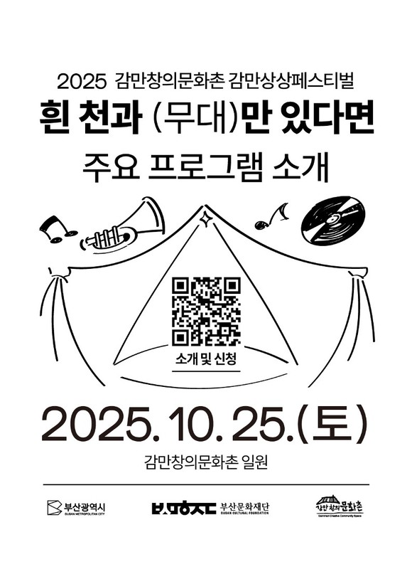 이번 축제의 주제는 「흰 천과 (무대)만 있다면」이다. 특별한 시설이나 장치 없이도 예술의 본질은 ‘사람과 무대’로부터 시작된다는 메시지를 담고 있다. 특히 올해는 기존의 단순한 전시·공연을 넘어, 감만창의문화촌 입주작가 중심의 창작과정 공개와 공연예술 중심의 창작 플랫폼으로 전환을 본격화한 첫 시도라는 점에서 의미가 크다.