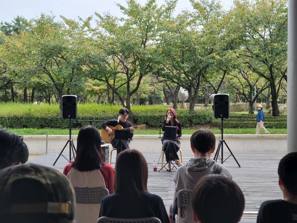같은 날 오후 1시에는 미술관 1층 야외 수공간 데크에서 미술관의 인기 프로그램인 버스킹 공연 〈찰랑, 찬란한 기억〉이 열린다. 선곡 키워드는 ‘가을, 첫사랑’으로, 달콥쌉싸름한 첫사랑과 이별의 추억을 회상할 수 있는 곡들로 채워진다. 이번 공연은 약 40분간 진행되며, 화랑유원지의 가을을 몸소 느끼며 음악에 취해보는 기회가 될 것이다.