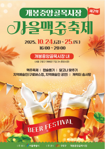특히 오는 24일, 25일 이틀간 개봉중앙 골목형상점가에서 ‘가을맥주축제’를 개최해 지역 주민들의 상권 이용과 참여를 높인다. 축제에서는 상점가 이용 고객을 대상으로 맥주부스와 식사공간을 제공하고 달고나 만들기 등 참여형 이벤트와 거리문화공연이 함께 진행돼 상인과 주민이 함께 즐길 수 있는 시간을 마련할 예정이다.