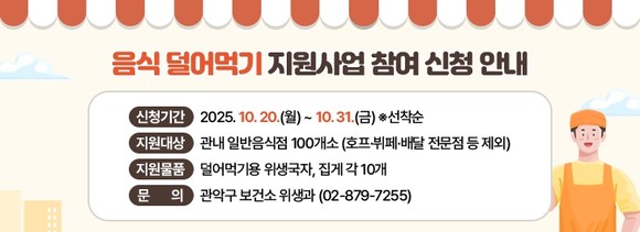 서울 관악구(구청장 박준희)가 음식문화 개선 및 감염병 예방을 위해 ‘2025년 음식물 덜어먹기 지원사업’을 추진한다.