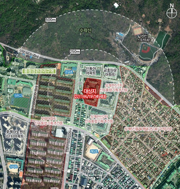 상계한신3차아파트는 1990년 5월에 준공된 최고 15층 348세대 규모의 단지다. 지난 2023년 재건축 안전진단 기준 완화 이후 2024년 9월 재건축 안전진단을 통과하며 본격적으로 재건축 추진에 착수했다. 올해 7월에는 동의율 58%를 빠르게 확보해 서울시에 신속통합기획 자문을 신청했다. 당시 노원에서 서울시에 신속통합기획을 신청한 4번째 단지에 해당한다. 이후 1차 서울시의 자문회의를 거쳐 자문의견 조치계획 검토한 사항을 계획안에 담아 구에 제안했다.
