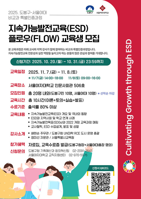 서울 도봉구(구청장 오언석)가 서울여자대학교와 함께 2025학년도 2학기부터 공동으로 ‘도봉-대학 ESD(지속가능발전교육) 캠퍼스’ 일환으로 ‘비교과 특별인증과정’을 운영한다.