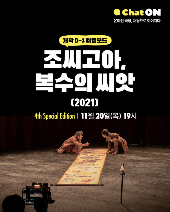 국립극단(단장 겸 예술감독 박정희) 온라인 극장(이하 온라인 극장)이 오는 11월 1일, 개관 4주년을 맞이해 VOD 중계와 함께 실시간 채팅으로 소통하는 특별한 이벤트 ChatON을 선보인다.