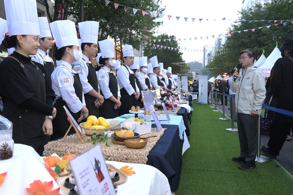 특히, 이날 야외에서 펼쳐진 ‘이순신 밥상 요리 상품화 대회’에는 20팀이 참여해, 이순신 장군과 관련된 스토리가 담긴 다양한 요리를 선보였다. 집중과 정성으로 빚은 요리들이 심사위원과 관객의 감탄을 자아냈고, 대상은 명량모자 팀에게 돌아갔다. 누룽지를 이용해 거북모양의 전통약과를 만들고, 감태로 울돌목의 물살을 형상화해 높은 평가를 받았다. 대회를 주최한 서울중구상권발전소는 수상작들을 활용해 상품을 개발할 예정이다.
