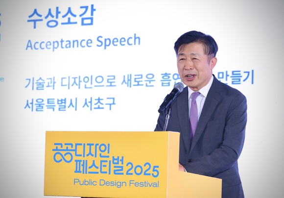 서울 서초구(구청장 전성수)는 10월 24일 코사이어티 서울숲에서 열린 「2025 대한민국 공공디자인대상」 시상식에서 대상인 대통령상을 수상했다고 밝혔다. 이번 공공디자인대상 대통령상 수상은 2020년 ‘언택트 선별진료소’에 이은 두 번째 수상으로, 서초구의 선도적 디자인 역량을 다시 한번 입증했다는 평가다.