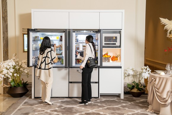 특히 주방 가구에 완벽히 맞게 설치되는 ‘키친핏 맥스 디자인’이 눈길을 끌었다. 좌·우 4mm의 최소 간격으로 도어가 가구에 닿지 않으며, 108도까지 열려 공간 활용성을 극대화했다. 냉장고 가구 리폼 서비스까지 지원해 인테리어 일체감을 높였다.