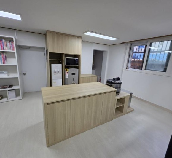 실내는 어르신들의 생활 패턴을 세심하게 반영했다. 업무와 생활·식사가 함께 이뤄지는 공간 특성을 고려해 효율적으로 재구성했다. 어르신 신체조건을 반영한 맞춤형 배식대를 새로 제작하고, 공간을 분리해 동선을 최적화했다. 또한 업무공간과 취미활동 공간을 별도로 분리해 이용 편의성도 높였다.