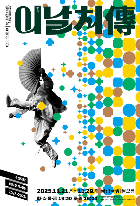 국립극장(극장장 박인건) 전속단체 국립창극단(예술감독 겸 단장 유은선)은 11월 21일(금)부터 11월 29일(토)까지 창극 <이날치傳>을 달오름극장에서 공연한다.