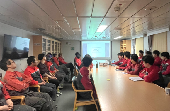 교육은 실무 중심으로 구성되며, 매달 새로운 주제를 정해 진행된다. 첫 운영이 시작된 지난달에는 ‘개인보호구 착용’을, 두 번째 프로그램이 열린 지난 27일에는 ‘한랭기온 작업 안전’을 주제로 승조원 교육이 이뤄졌다. 교육과 함께 현장 미비점과 개선방안을 공유하는 토론도 병행됐다.
