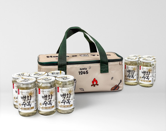 새롭게 선보이는 캠핑 패키지는 180㎖ 용량의 백화수복 원컵 10개와 이를 모두 담을 수 있는 단열 캠핑백으로 구성됐다. 코스트코 등 창고형 할인매장과 일부 대형마트에서 한정 판매한다.