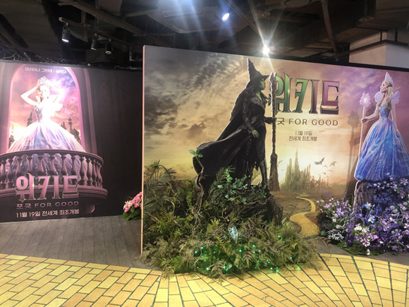 팝업 공간엔 계속해서 위키드의 대표 노래들이 울려 퍼지는데, 이 또한 영화 속 주인공이 된 듯한 몰입감을 높이는 감상 포인트다. 또 꽃이 만개한 공간, 글린다의 공간 등에선 달콤한 향까지 더해지면서 공간을 보는 데 그치지 않고 향으로 느끼며, 귀로 음악도 즐길 수 있는 점이 인상적이다. 한편 영화는 다음달 19일 전세계 최초로 한국 극장에서 개봉한다.