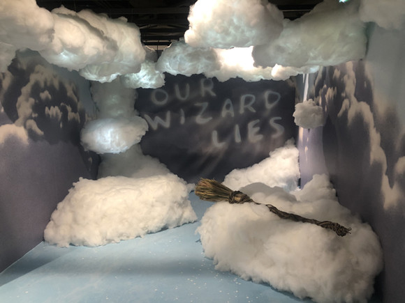네 번째 공간엔 엘파바가 빗자루를 타고 하늘을 비상하듯 구름 가득한 하늘 배경이 자리하며 가슴을 탁 트이게 한다. 이곳엔 엘파바가 남긴 구름 메시지도 보인다. 이어지는 글린다의 버블 포토존은 거대한 버블 조형물이 설치돼 있는데 이 조형물에 직접 올라타 착한 마녀 글린다가 돼보는 경험을 할 수 있도록 꾸려졌다.
