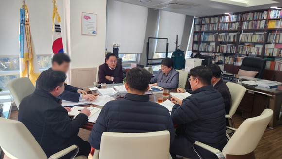 박강수 마포구청장이 한국지역난방공사 관계자들과 지역난방 보급 확대 방안을 논의하고 있다. 사진=마포구청