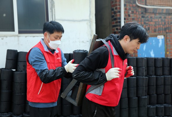 서울 노원구 상계3·4동 주민센터 일대에서 진행된 이번 행사에는 임직원 약 45명이 참여해 연탄 2500장을 에너지 취약계층 10여 가구에 배달했다.