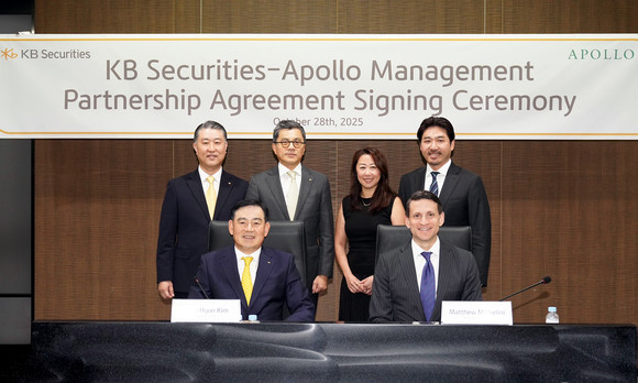 이번 협약식은 서울 여의도 KB증권 본사에서 양사 주요 경영진과 실무진이 참석한 가운데 진행됐다. 아폴로는 1990년 설립 이후 운용자산 약 1,200조 원을 관리하며 사모대출 분야에서 세계 1위로 평가받는 글로벌 대체투자 운용사다.