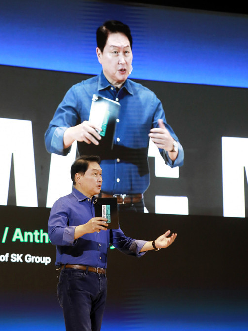 최태원 회장은 폭발적인 AI 수요에 대응하기 위한 해법으로 ‘효율 경쟁’을 제시하며 ▲메모리반도체 증산 ▲AI 인프라 구축 ▲적극적인 AI 활용 전략을 강조했다.