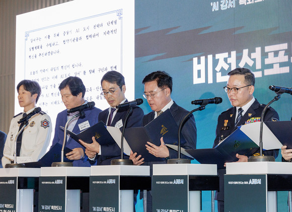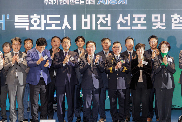 이어 진행된 비전 선포식에서 진교훈 구청장은 교육, 안전, 의료·복지, 경제 각 분야별 대표 기관과 비전 선포문을 공동 낭독하며 AI 특화도시 조성을 향한 굳은 의지를 대내외에 알렸다.