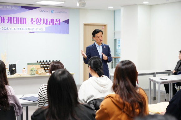 서울 성북구(구청장 이승로)가 성신여자대학교와 협력해 K-뷰티 인재를 양성하고 청년들의 취·창업을 지원하기 위한 ‘성북 청년 뷰티 아카데미 조향사반’ 수료식을 11월 1일 성신여자대학교 국제교육관에서 열었다.