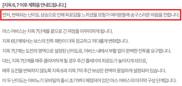 반발이 커지자 넥슨은 7월 31일 개발자 노트를 통해 “반복되는 난이도 상승으로 인해 피로감을 느끼셨을 모험가 여러분들께 송구한 마음을 전한다”고 밝혔다. 회사 스스로 콘텐츠 재탕 사실을 인정하고, 공식적으로 사과한 셈이다.