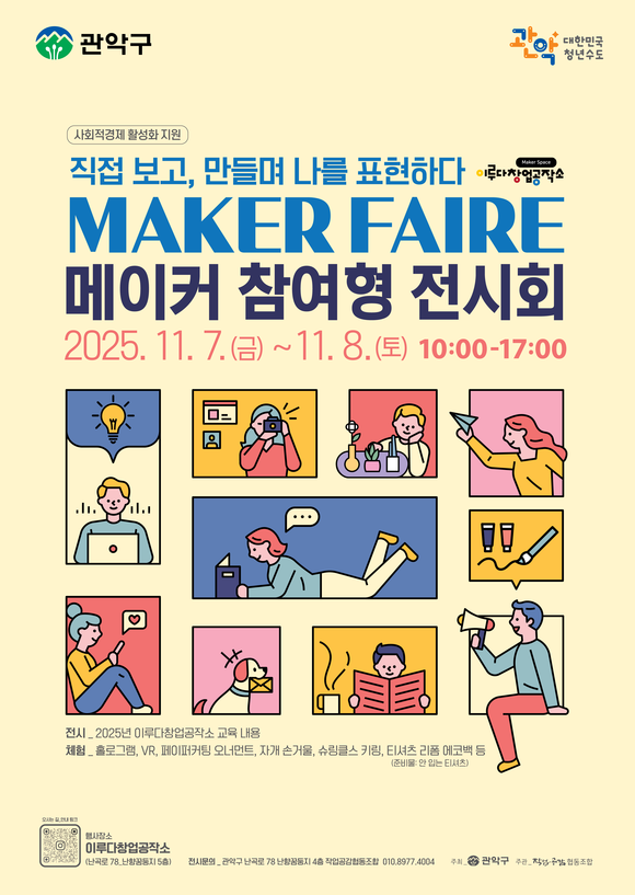 서울 관악구(구청장 박준희)가 오는 7일부터 8일까지 양일간 난향꿈둥지(관악구 난곡로 78) 5층 이루다 창업공작소에서 ‘메이커 페어’를 개최한다.